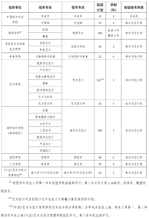 (五)工业设计、城市设计、艺术史论、艺术史论(中外合作办学)、艺术管理、艺术管理(中外合作办学)、艺术教育、文化产业管理专业无省统考要求,不组织校考,安排在普通类专业相应批次进行招生录取。具体分省计划以计划投放省市公布的招生专业目录为准。