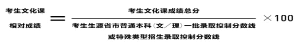 高考综合改革省市的考生文化课相对成绩使用特殊类型招生录取控制分数线进行计算。海南省考生文化课成绩使用标准分。